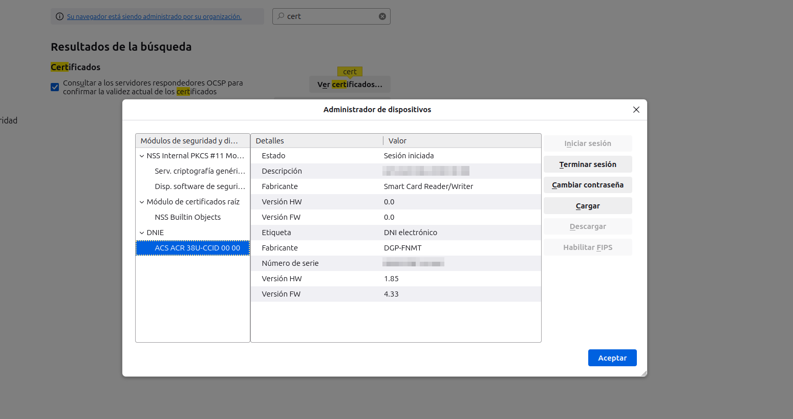 Allí tienes que añadir un nuevo dispositivo dando al botón de Cargar, yo le pongo de nombre DNIE y el fichero es: